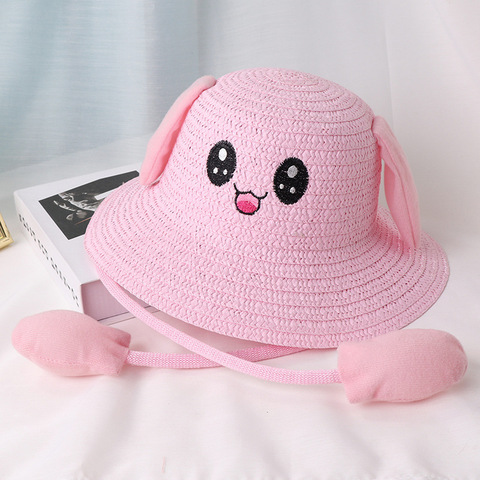 Stock moda bambini lavorato a maglia orecchie di coniglio in movimento paglia 2020 bambini personalizzati bambini simpatici animali bambini estate cappello di paglia cappello da spiaggia