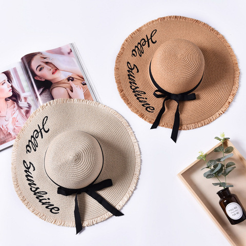 All'ingrosso popolare cappello da sole a tesa larga stile ricamo personalizzato pieghevole da spiaggia cappelli di paglia per le donne